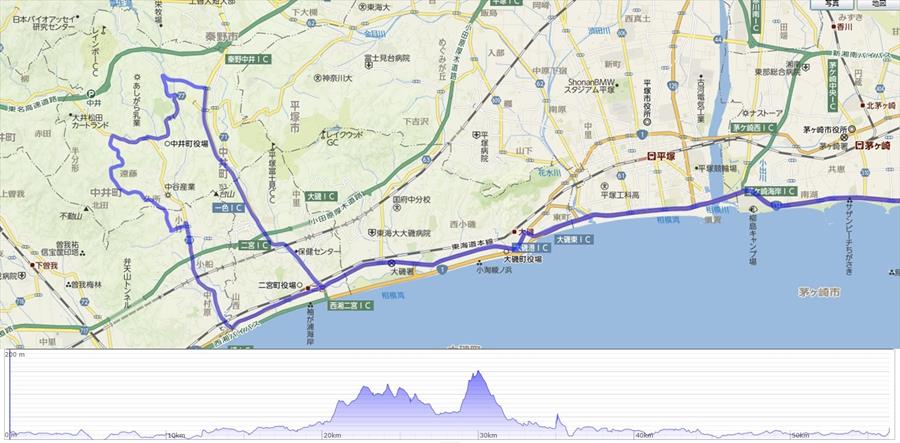 13時に出発し、国道134号線、国道1号線で二宮へ向かいます。