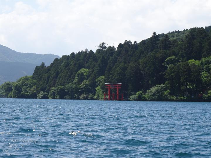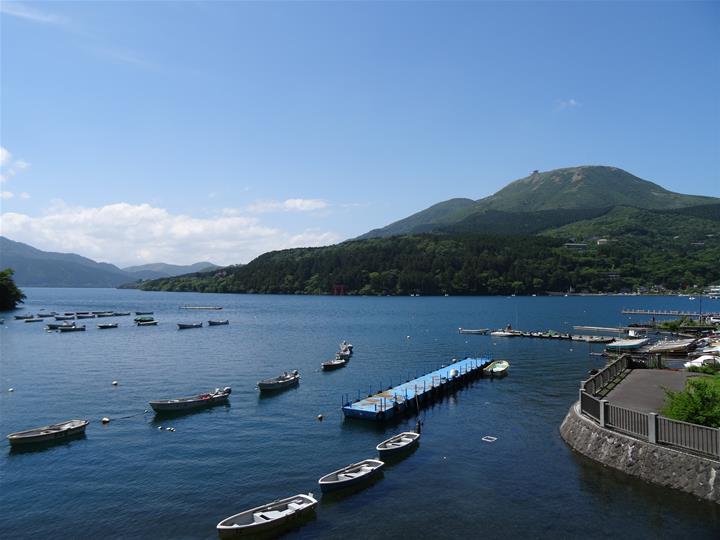 途中の芦ノ湖や箱根山が見れるビューポイントで1枚