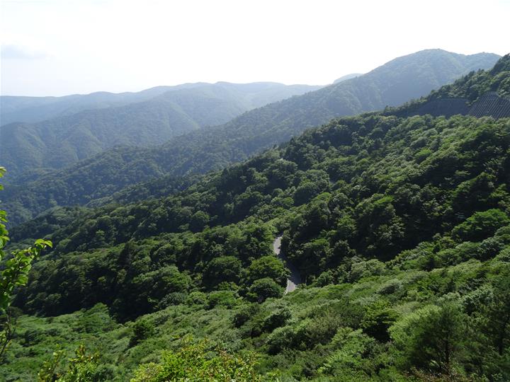 大観山(標高1,000m)から奥湯河原温泉郷までの下りはブレーキ操作だけで、約30分弱で到着しました。