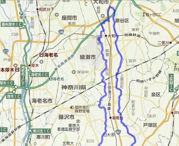 境川CR~引地川 クロスバイクでノルマの50km試走 近場(湘南周辺) X Facebook はてブ Pocket LINE コピー 2014.01.262025.07.05 2014年1月26日 <境川CR> 冬場の筋力維持のために自転車を始めたのですが、すっかりハマってしまいました。 この冬は登山は控えて、はやく自転車に慣れたいという気持ちが強いようです。今回のルートは境川CR(サイクリングロード)で国道246号線あたりで折り返し、帰路は地元の引地川沿いを戻るといった感じです。大和市と藤沢市を縦断する引地川は幼少の頃よりよく遊んでいた地元の川なので川沿いの雰囲気も味わいながら走って来ました。 朝10時過ぎに自宅を出発します。寒空のもと、藤沢橋から少し先より境川CRに入り、スイスイと20kmほど走り、国道246号線の交差部まで行きます。 国道246号線交差部国道246号で少し厚木方面に走り、引地川に向かいます。 大和付近 泉の森の少し南側から引地川沿いを走ります。 途中、住宅街を抜けたり、ダート道を走ったりしながら進みます。 東海道新幹線高架下を走って 横浜水道もぐぐって 引地川沿いはスピードを出せる区間が限られていたので、のんびりと走りって13時30分頃帰宅しました。 ■走行距離 約51km 一応、ノルマとしていた50kmは走れましたが疲労感もなく今日は少し物足りなかったようです。