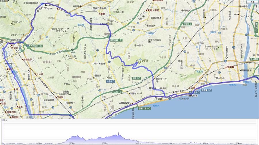 今日は大磯丘陵から平塚七国峠を少しヒルクライム後、秦野から松田経由で酒匂川CRを走って来ました。