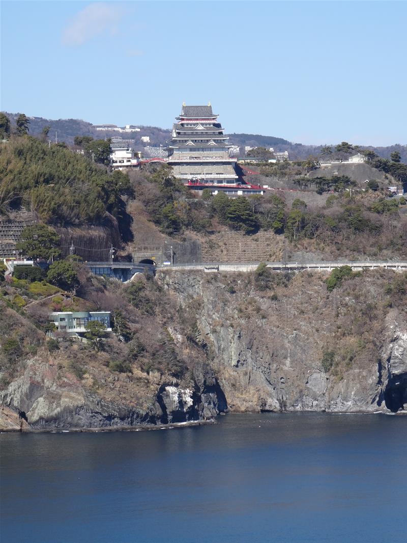 熱海城の雄姿 断崖絶壁の上に聳え立ちなかなかカッコいいです