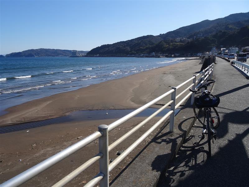 伊豆多賀、網代周辺も徘徊した後、網代からの再び始まる急坂+トンネルを上っていき、下っていくと宇佐美海岸に到着しました。