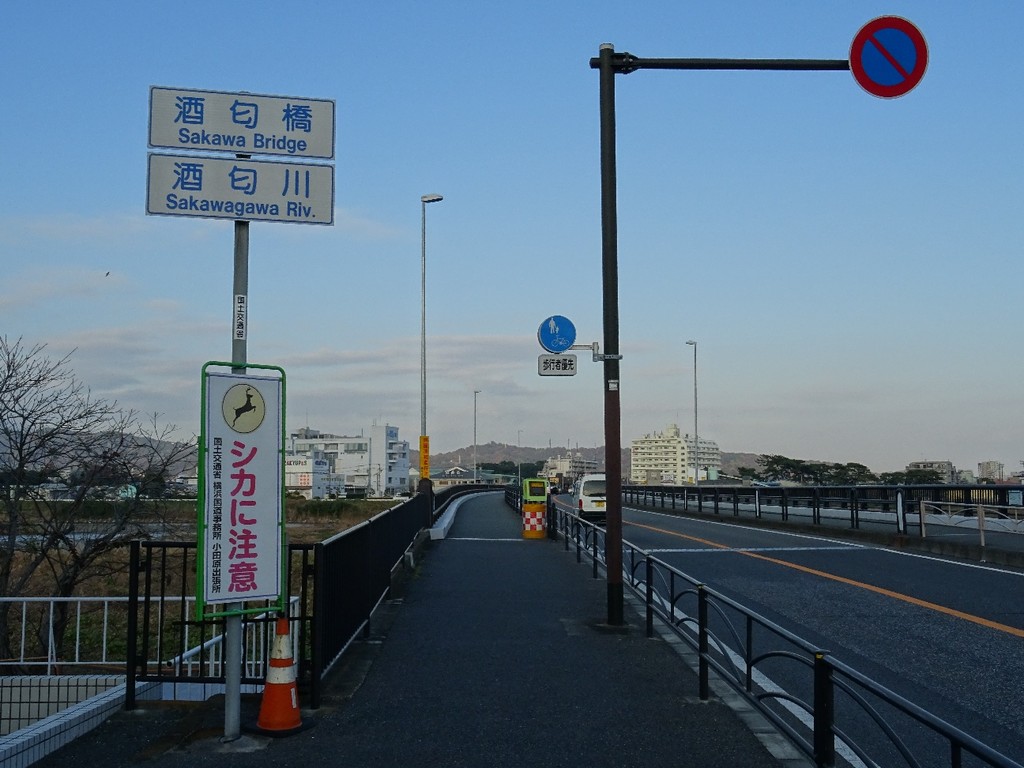 酒匂橋 「シカに注意」? こんなに市街地でも出没するの??