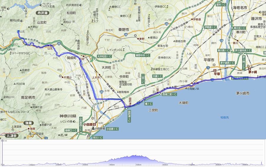 ルート全体的にはほとんどフラットな道を選択し、酒匂川CRを往復走行するコースにより、それほど疲労感も感じずに走れたので良かったです。