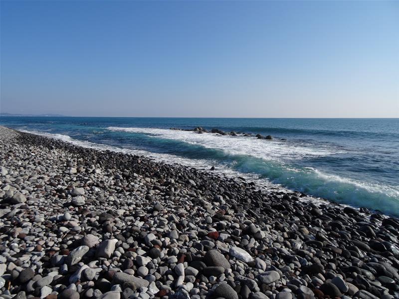 ゴロタ石の海岸です。メジナが釣れるポイントです。