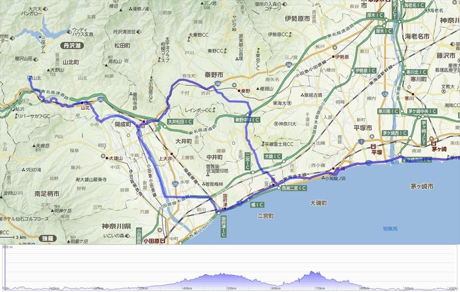 GWの登山に向けて、少しでも脚を鍛えて心拍を上げておこう・・ ということで、今日の帰路は国道246号で渋沢へ上り、秦野より県道71号線で二宮経由で帰りました。