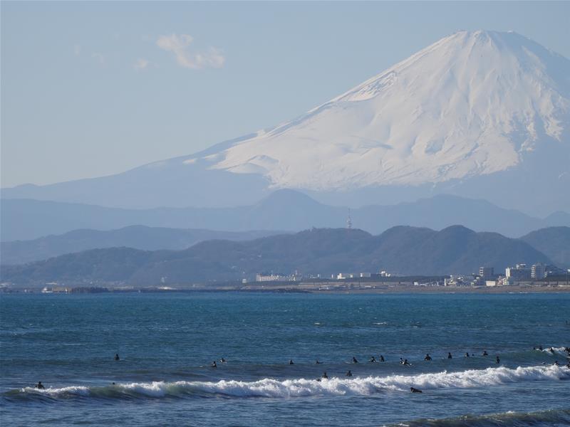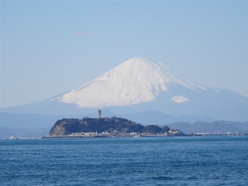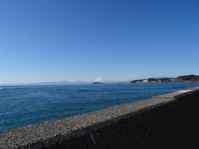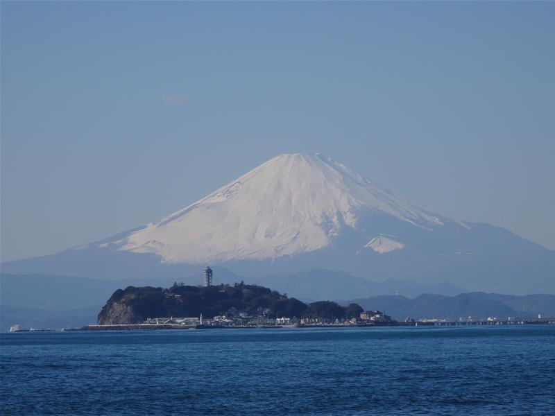 小坪港より、富士山を背にした江の島が綺麗に見えました。